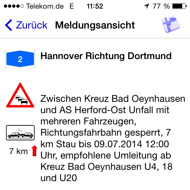 Das Navi gibt eine Zeit von 41 Minuten bis nach PB vor. Hat aber sicherlich nicht mit dem Stau gerechnet, in den wir nach 3 km Autobahn reinfahren. Zeit nachzudenken. Ich verstehe wirklich nicht, warum da ein Polizeiauto hinter der letzten Abfahrt steht und den Stau ansagt. Insbesondere bei einer Fahrbahn-Sperrung.
